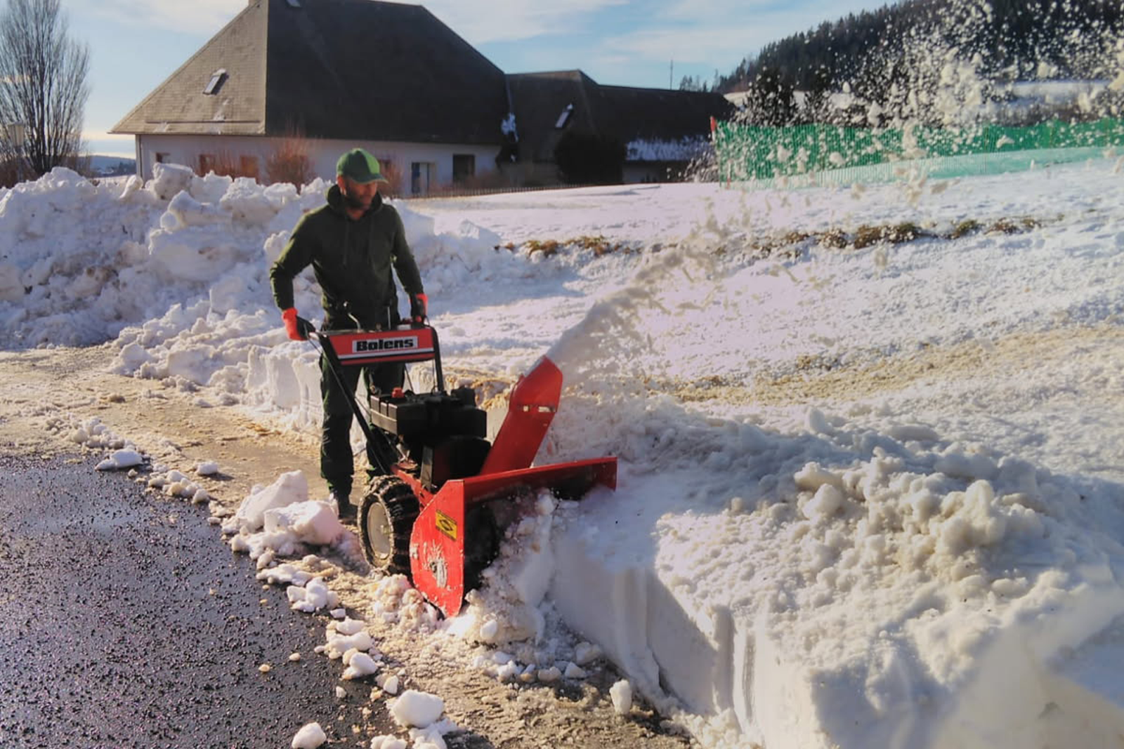 Schneeräumung und Glatteisbekämpfung auf Parkplätzen, Privatstraßen, Gehsteigen sowohl in Wohnanlagen als auch in Gewerbetrieben.